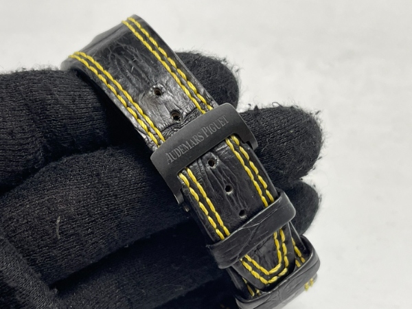 在鐘錶界有誰不認識 AP?大膽的鍛造碳纖維 42mm 錶殼、醒目的黑色 Mega Tapisserie 錶盤搭配發光黃色點綴、獨樹一格的陶瓷錶圈,以及黑色橡膠錶帶。因其獨特的黑黃配色而被暱稱為「Bumblebee」(即為大黃蜂)。