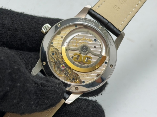 透過藍寶石水晶玻璃錶底蓋,可欣賞到腕錶內部的核心“美景”,裝飾精湛的 Calibre 90-02 自製機芯;格拉蘇蒂標誌性的雙鵝頸微調機構以及其他特有的傳統製錶藝術元素一覽無遺:如四分之三夾板、帶有格拉蘇蒂柱狀紋雕飾的鏤空自動盤、藍鋼螺絲以及標誌性雙鵝頸微調裝置,美不勝收。
