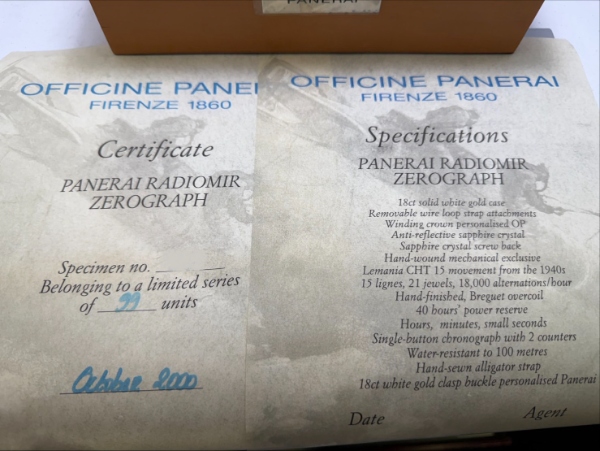 CASE: 18K White Gold. Radiomir Zerograph Pam067 Special Editions. 42mm.
