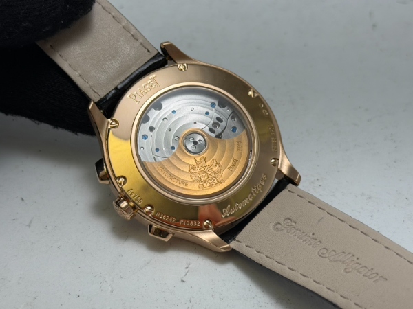 Custom calfskin strap & original 18KRG DP buckle. Original box & certificate. The condition has been slightly polished like new.