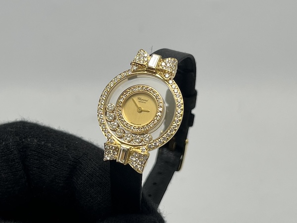 18K Yellow Gold. Happy Diamond 快樂鑽 蝴蝶結 原鑲鑽圈 24mm.