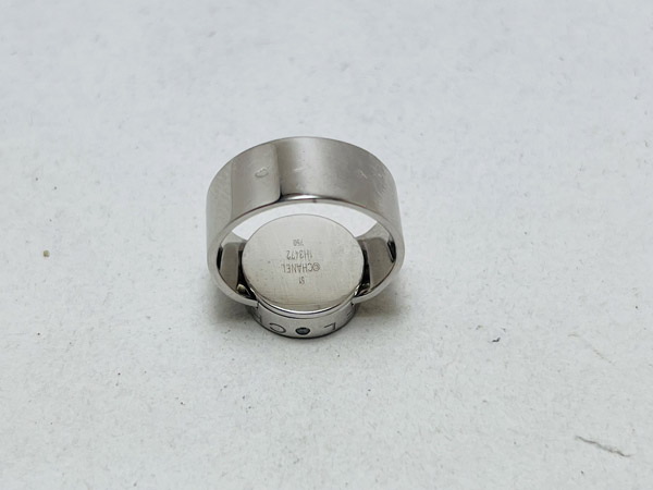 整枚原廠鑲嵌,桌面密鑲 37 顆圓形明亮式天然鑽石,戒台側鐫刻品牌名稱及鑲有兩顆天然鑽石。