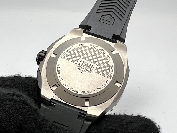 這枚 TAG Heuer Formula 1 Chronograph 採用輕盈而堅固的 2 級鈦合金錶殼,帶來極佳的配戴舒適度與日常耐用性,同時保有運動腕錶應有的堅實結構。全錶經黑色 DLC(鑽碳鍍層)處理,呈現深邃霧黑質感,進一步強化耐磨特性與現代美學。
