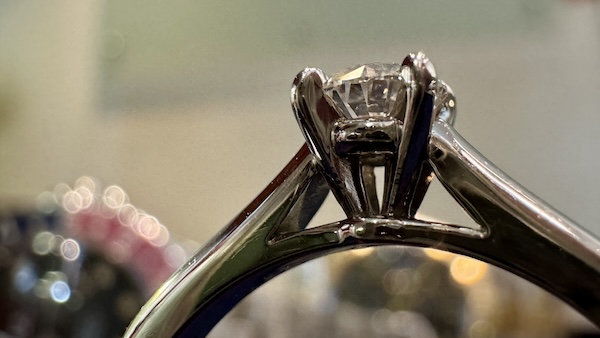 鑽石菱紋與鑲爪完美對齊,造就「鏡面拋光」以增強光線折射效果,讓鑽石戒指看起來更耀眼奪目。革新的鋪鑲設計讓永恆的單鑽鑽戒更顯摩登,鑽石光芒悠然流動。