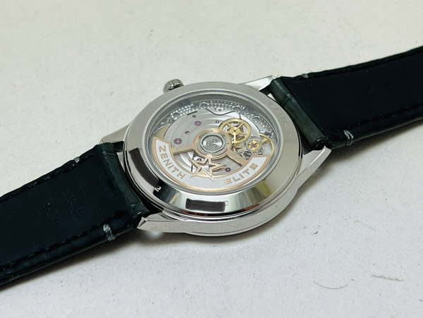 男錶,Cal.Elite 692 自動機芯,時分秒針、月相指示;原鑲鑽石錶框,共重 0.615 CTS. 50 小時動力儲存;防水 50 M。
