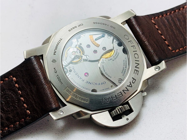 Pam368 由鈦金屬製成,比其它材質更輕、強韌且過敏度極低,配置三個發條盒的 P.2002/9 機芯提供長達八日的動力並設置顯示在背面維持品牌 OG 款式般錶面簡潔,三個發條盒提供之動力效率也比一般單發條盒更加穩定及有力;