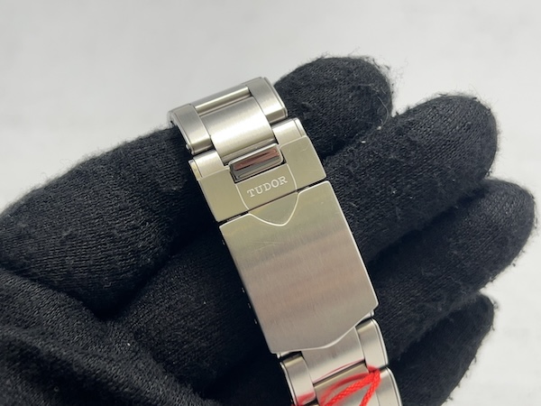 斧頭針、棒形刻度等細節仍然保留,就連 GMT 紅針也沿用斧頭針,搶眼又獨特;另外,此品的鋼帶款用上鉚接錶鏈,是 Tudor 向 50 年代及 60 年代的標配錶鏈致敬,兩側以鉚釘頭連接,呈現獨特梯形結構,同時沿用現代的實心鏈節等工藝,一致的復古風格值得一讚。