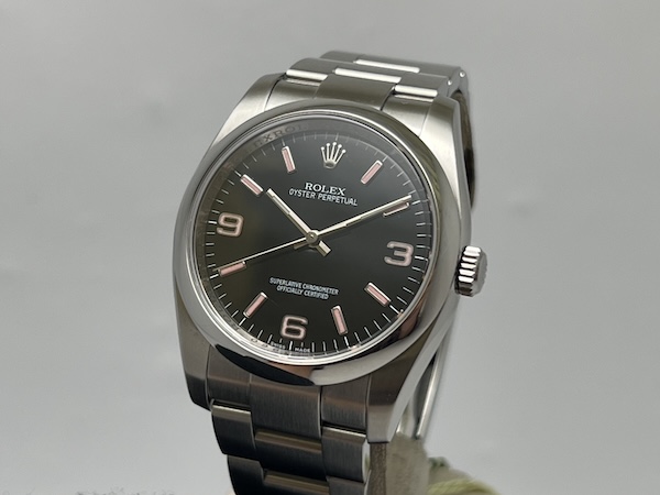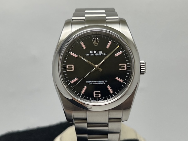 SS. Oyster Perpetual 116000 Black Dial w/ Pink Indexes. 36mm.