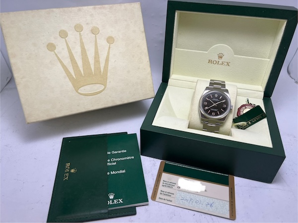原裝不鏽鋼 Oyster 錶帶&折疊錶扣。2009 年 TW AD 保證卡。"M" 字序號。品相僅稍整至如新。