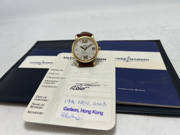 客製小牛皮錶帶&原裝 18KYG 錶扣。原廠 2003 年 AD 保證書。品相九成五新,無拋整。