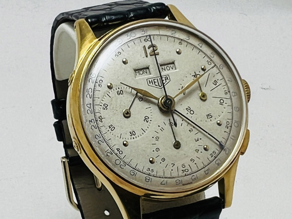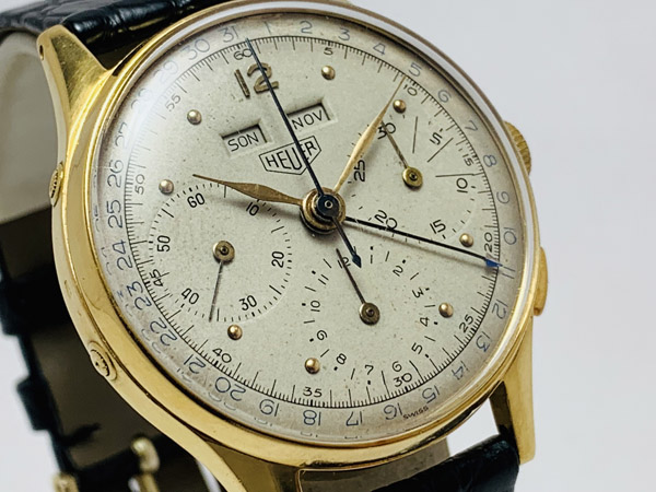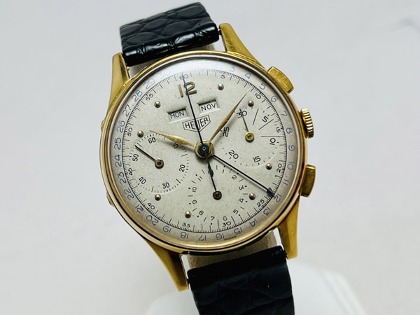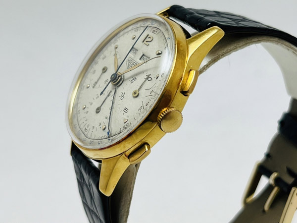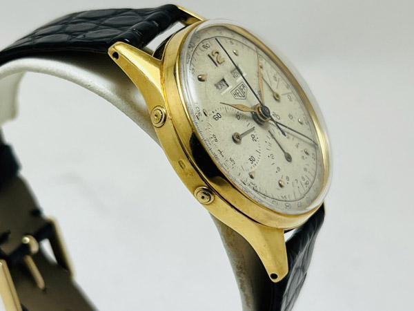 早在 1960 年代當時 HEUER(TAG HEUER 前身)不管是名氣或是計時錶皆是屌打各家品牌的,今次此錶款用上傳奇機芯 Valjoux 72C(C 為日曆之標記),一般 72 機芯產量就已不多,72C 在當年產量更加稀少,更別說這支的面盤狀況還如此完整漂亮。