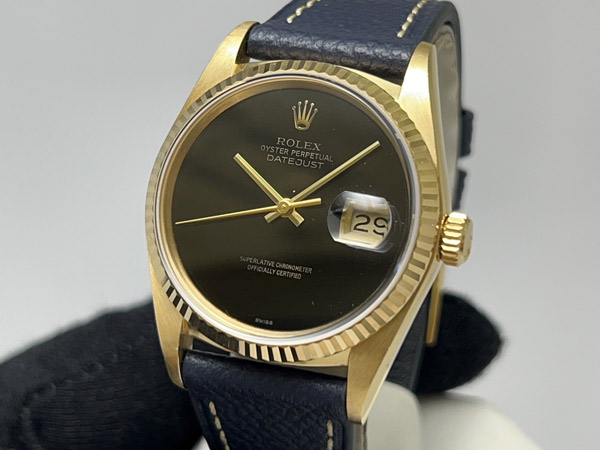 18KYG. Rolex Oyster Perpetual DateJust 16018 ONYX Dial 無字天書 36mm.