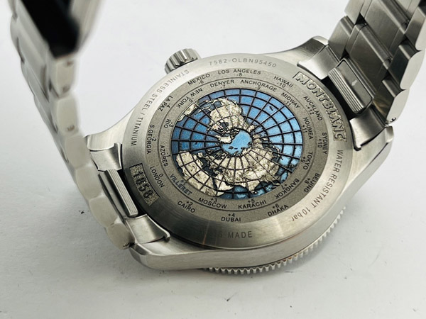 搭配黑色太陽飾紋錶盤和錐形設計可互換精鋼錶鍊,備有微調功能,可調校至精準貼合手腕。錶背上精細鐫刻顯示 24 個時區中每個時區的洲、海洋和城市名稱,提供世界時間顯示功能;細膩又漂亮,沒在正面分散注意力,卻也讓錶主得以 “獨” 芳自賞。 |