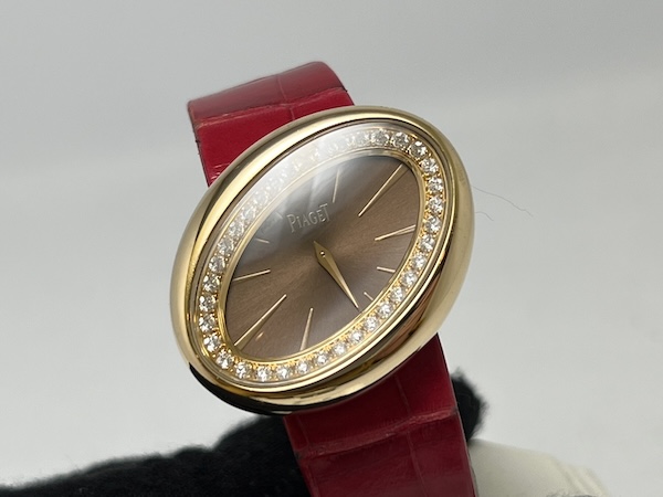 伯爵對於取悅女性之道可謂博古通今,原廠鑲嵌三十六顆共重 1.1 克拉的全美頭段等級鑽石黃金錶圈與巧克力面搭配甚好,其旋轉式錶圈設計滿足喜好多變的風情萬種女性;讓您一鴨三吃之外,一錶也能三戴以上。 |
