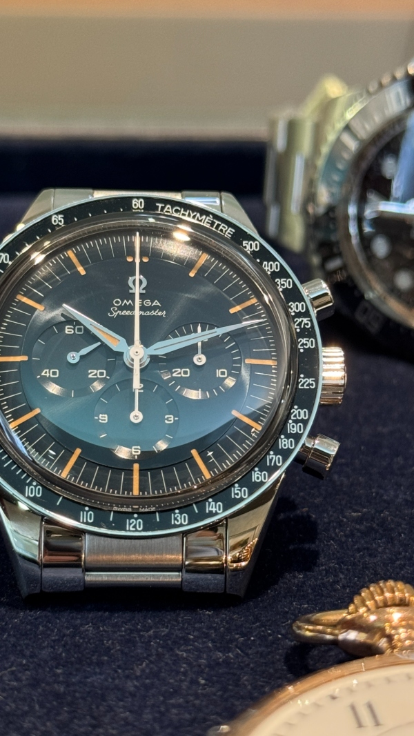 錶盤和錶冠設有復古歐米茄標誌,錶背飾有著名的海馬徽章,以及「THE FIRST OMEGA IN SPACE」(首款進入太空的歐米茄腕錶)和「OCTOBER 3, 1962」(1962 年 10 月 3 日)鐫刻字樣。