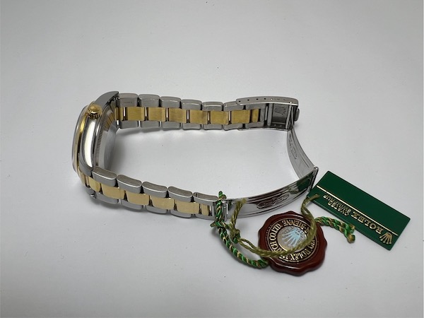 原裝不鏽鋼&18K Yellow Gold 錶帶及摺疊錶扣。原廠保證書,品相九成新,保存良好。