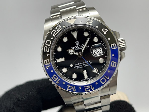 GMT-Master II 系列中現今當紅炸子雞的藍黑配色,尤其三板帶版本亦是停產的絕版品,從宣佈停產後後已緩緩上升,後續走勢勢必水漲船高;除功能強大且符合日常使用之外,帥氣外表亦是其燙手的原因之一。