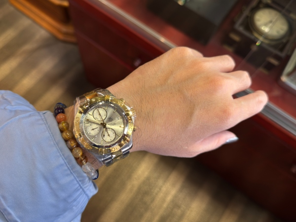 半金的設計讓它看起來有份量,而且可能是因為鏡面拋光處理與其特意設計的角度,導致這只錶感覺起來就是比較亮,能文能武的 vibe 推薦給那些想要一只『能上山下海、也能配西裝』的錶友。