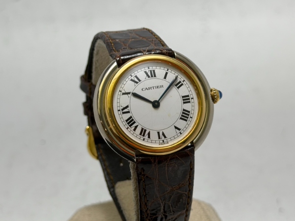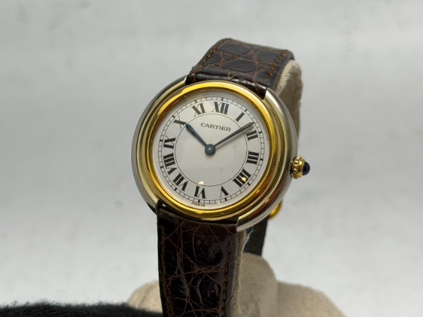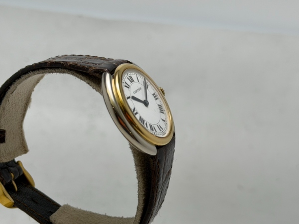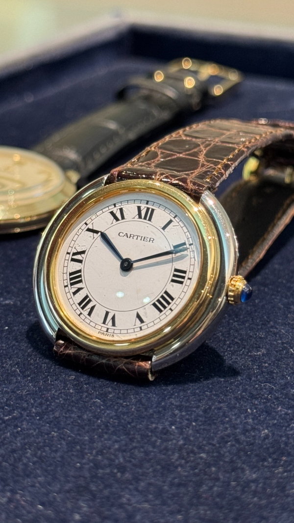誕生於浪漫的巴黎,Cartier Vendome Deux Ors 以其標誌性的雙色金(Dual-tone Gold)設計聞名於世。圓潤的錶殼由 18K 黃金與白金(或玫瑰金,依版本而定)交織而成,象徵著衝突與和諧的對比。