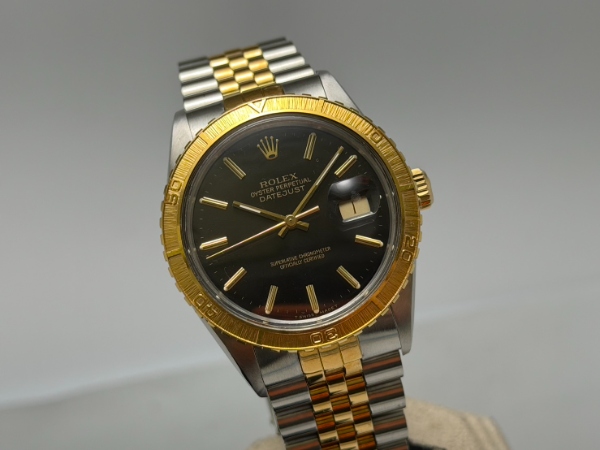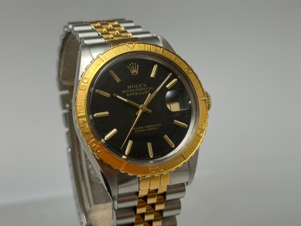結合了 Datejust 的優雅與 Submariner 的工具機能,這在 80 年代的勞力士中是非常大膽的設計。其雙向旋轉外圈採用 18K 金材質,上面有 60 分鐘的刻度標記,這原本是為了空軍「雷鳥特技飛行小組(Thunderbirds)」設計,用來進行簡易計時。